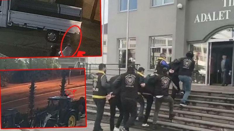 Tire'de 6 Ekim'de S.S. (52), H.E. (40) ve M.S.F.'ye (48) ait 3 iş yerine saldırı düzenlendi. İstihbarat Şube Müdürlüğü'nün desteği ile İzmir Asayiş Şube Müdürlüğü'ne bağlı Gasp Büro Amirliği, SAM Büro Amirliği ile Organize Suçlarla Mücadele Şube Müdürlüğü ve Tire İlçe Emniyet Müdürlüğü ekipleri, çalışma yaptı. Olaya karışan şüphelilerin A.E. (21), A.M.S. (34) ve O.N. (40) olduğu belirlendi. 21 Ekim'de yapılan operasyonla şüpheliler yakalandı. Yapılan aramalarda olayda kullanıldığı değerlendirilen 1 tabanca ele geçirildi. Polisteki işlemlerinin ardından dün adliyeye sevk edilen şüpheliler tutuklandı. Saldırı anları ise, bir iş yerinin güvenlik kamerasına yansıdı.