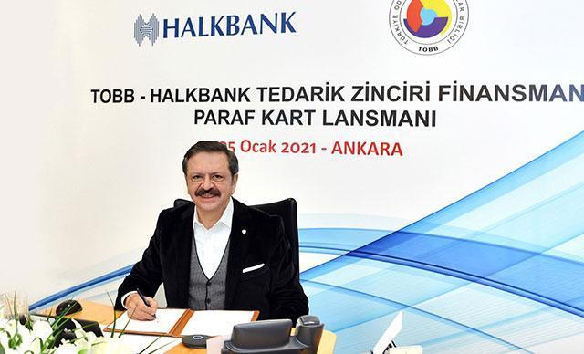 Türkiye Odalar ve Borsalar Birliği (TOBB) ile Halkbank arasında 'Paraf Ticari Kredi Kartı ile Güvenceli Tedarik Zinciri Finansmanı Anlaşması' imzalandı. Halkbank'ın satıcıya tahsilat güvencesini, alıcıya da 18 aya kadar vade imkanı sağlayan anlaşmadan TOBB üyesi 1,5 milyon firma yararlanabilecek.