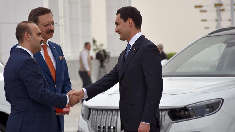 Sanayi ve Teknoloji Bakanı Mehmet Fatih Kacır, adını Pamukkale Travertenleri'nden alan 2 beyaz renkli Togg'u, Türkmenistan Devlet Başkanı Serdar Berdimuhamedov'a teslim etti.