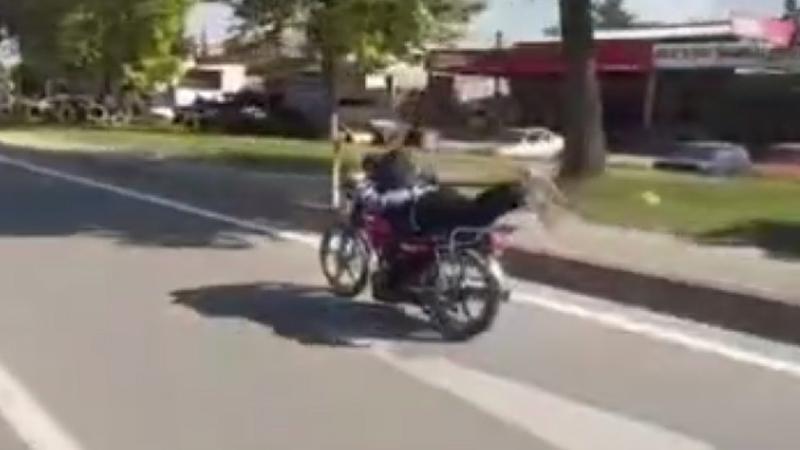 D-100 kara yolunda motosikletini üzerine yüzüstü yatarak kullanan sürücü, trafiğe tehlikeye düşürdü. Başka bir motosikletin sürücüsü tarafından cep telefonu ile kaydedilen görüntülerde sürücü bir süre sonra akan trafikte gözden kayboldu. (DHA)