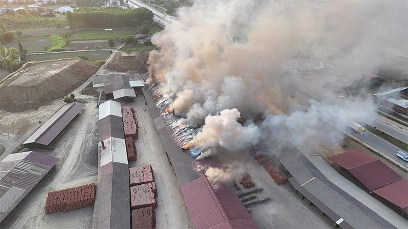 Bugün saat 19.30 sıralarında Tokat’ın Erbaa ilçesindeki bir tuğla fabrikasında yangın çıktı. İhbar üzerine olay yerine itfaiye ekipleri sevk edildi. Ekipler, yangını söndürmek için çalışma başlattı. Dumanların fabrikadan yükseldiği anlar ise dronla görüntülendi.