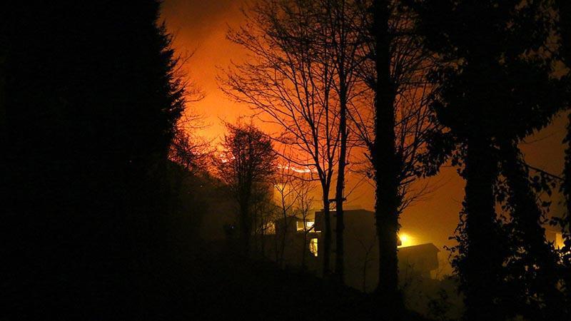 Trabzon'un Of ilçesinde mezrada çıkan örtü yangını, lodosun da etkisiyle geniÅŸ alana yayıldı. İlk yangının çıktığı Kıyıboyu'ndan Kıyıcık Mahallesi'ne sıçrayan alevlerin söndürülmesi için çalışmalar sürüyor. Dik ve engebeli arazide yol olmaması nedeniyle müdahalede güçlük yaÅŸayan ekiplerin, bölgede evlere yakın noktalardaki yangını kontrol altına aldıkları belirtildi.Â