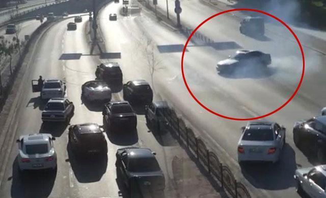 Konya'da, çevre yolunda sürücünün otomobille drift yapması nedeniyle uzun araç kuyrukları oluştu. O anlar, cep telefonu kamerasıyla görüntülendi.