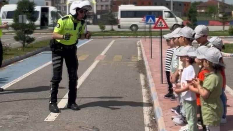 Düzce’de Trafik Güvenliği Haftası dolayısıyla anaokulu öğrencilerine eğitim veren trafik polisi Sinan Temizoğlu, çocukların polisten korkmaması gerektiğini anlatırken söylediği “Biz sizi korumak için ayıyı bile döveriz. Arıyı bile yakalarız. Hiçbir şey size zarar veremez” sözleri öğrencileri güldürdü.