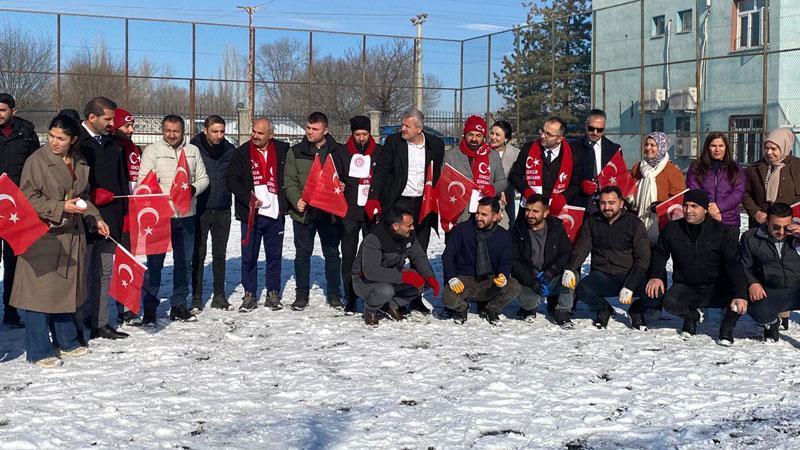 Iğdır Gençlik ve Spor İl Müdürlüğü personeli, Suriye sınır hattında terör örgütü YPG/SDG yandaşlarının Türk bayrağına saldırısını protesto etti.