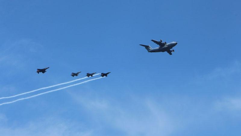 Saat 14.00 sıralarında Türk Hava Kuvvetleri'ne ait F16, F48 ve A400 M Tipi uçaklarla Solo Türk uçağı İstanbul Boğazı üzerinde uçtu. Uçaklar, İstanbul Boğazı üzerinde selamlama uçuşu yaptı.