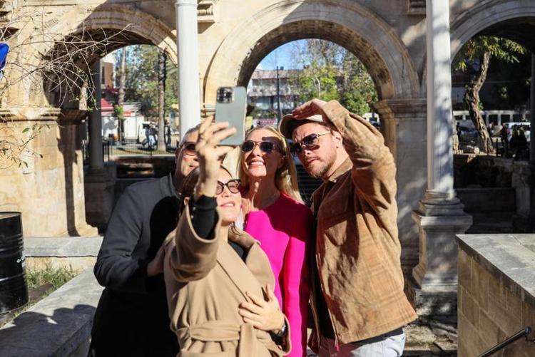 Türkiye’nin tanıtımı ve iç turizmdeki hareketliliği artırmak amacıyla Kültür ve Turizm Bakanı Mehmet Nuri Ersoy’un eşi Pervin Ersoy tarafından oluşturulan ‘Rotahane’ ülkenin farklı yerlerini farklı heyetlerle gezmeye ve tanıtmaya devam ediyor. Tanıtım için ‘Türkiye’yi Şehir Şehir Geziyoruz’ projesi kapsamında Ersoy, şarkıcı Sinan Akçıl ve beraberindekiler tarihi ve turistik yerleri gezmek için Antalya’ya geldi.