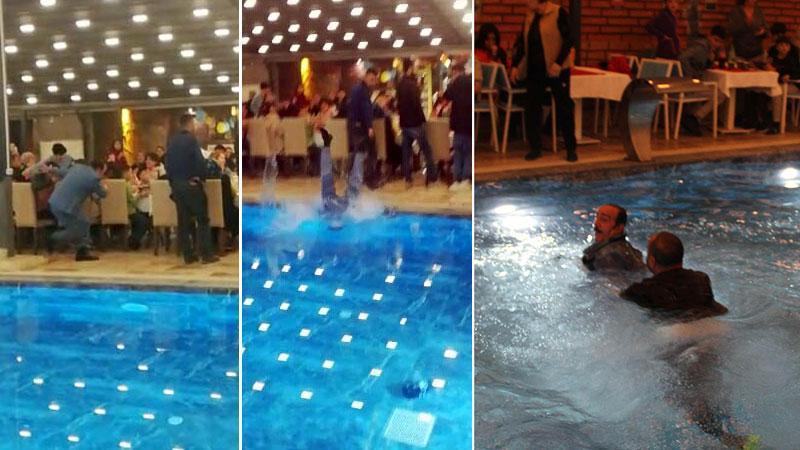 Türkücü Mustafa Keser, depremzedelere moral gecesinde havuza düştü