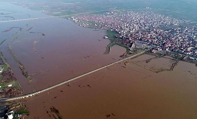 Yağış, kirliliği ile gündemde olan Ergene Nehri'nin su seviyesini de iki gün içinde 170 metreküp/saniyeden 389 metreküp/saniyeye yükseltti. DSİ Edirne 11 Bölge Müdürlüğü'nün 'turuncu alarm' verdiği Ergene Nehri, Edirne'nin Uzunköprü ilçesinde taşarak, bölgedeki ekili tarım arazilerini sular altında bıraktı.