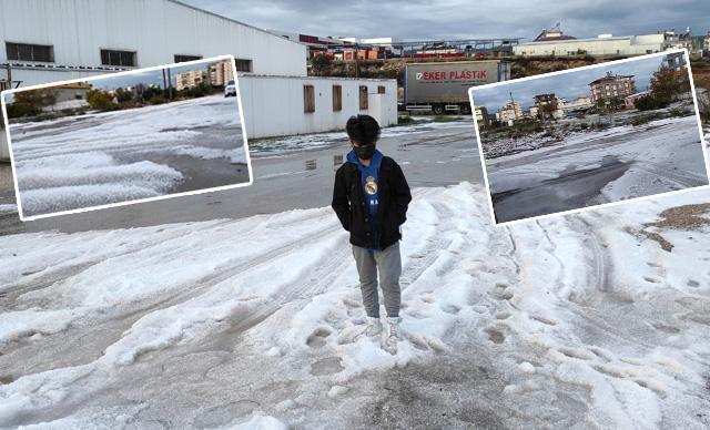 Meteoroloji'nin dün 'turuncu kod' ile uyardığı Antalya'da bu sabah dolu etkili oldu. Yarım saat yağan dolu sonrası kent merkezinde zemin, beyaz örtüyle kaplandı.