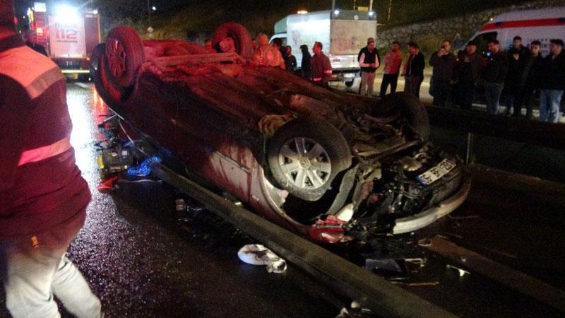 Tuzla D-100 Karayolu'nda karşı şeride geçerek takla atan otomobilin sürücüsü ağır yaralandı