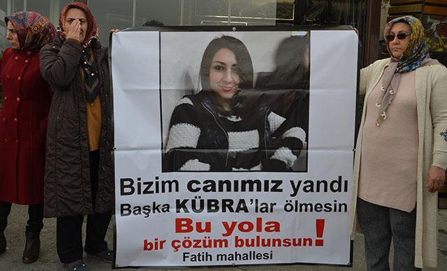 Tuzla'da bir otomobilin çarpması sonucu hayatını kaybeden Kübra Kilit'in ailesi olay yerine gelerek eylem yaptı.