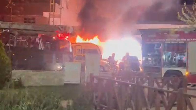 Alevleri fark ederek panikleyen mahalle sakinlerinin ihbarı üzerine olay yerine çok sayıda itfaiye, sağlık ve polis ekibi sevk edildi. Ekipler alevleri söndürürken, yangın sonrası 6 araç kullanılamaz hale geldi.