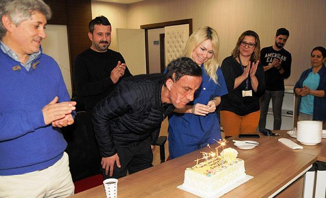 Uğur Acar, yüz naklinin 8'inci yılını pasta keserek kutladı