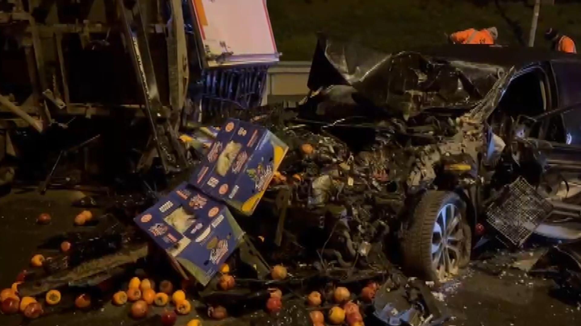 Ümraniye TEM Otoyolu'nda otomobil meyve yüklü kamyonetle çarpıştı: 2 yaralı