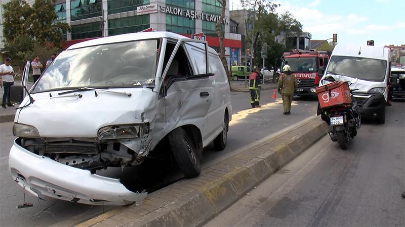 Ümraniye'de 2 hafif ticari aracın karıştığı kaza kamerada