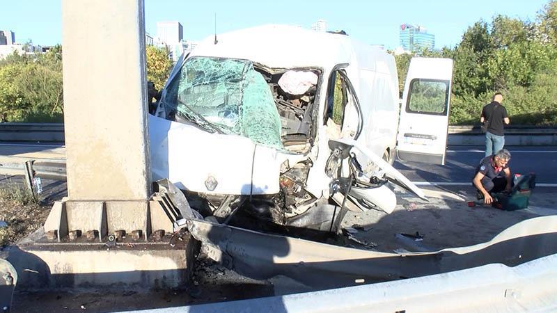 Ümraniye'de bariyere çarpan panelvan minibüsün şoförü yaralandı