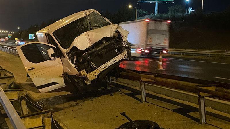 Ümraniye TEM Otoyolu’nda, sürücüsünün direksiyon hakimiyetini kaybettiği hafif ticari aracın bariyerlere çıktığı kazada sürücü Bedirhan Canikli yaralandı.