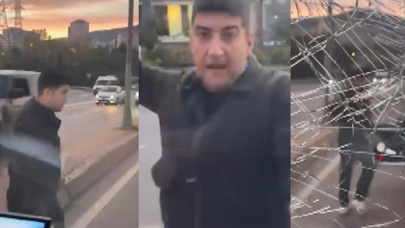 Olay dün akşam saatlerinde Ümraniye'de Esenşehir mahallesi İmes Sanayi Sitesi önünde yaşandı.İddiya göre iki aracın sürücüsü yolda seyir halindeyken tartışmaya başladı.Bir süre sonra 34 VU 4550 plakalı otomobil sürücü aracını diğer otomobilin önünde durdurdu.Aracından inen sürücü önce diğer aracın kapısını açmak için uzun süre uğraştı.Saldırgan sürücü kapısını açamadığı aracın camını yumruklamaya başladı.Araç sürücüsü ve yanında bulunan kadın korku ve panik yaşarken, saldırgan sürücü yumruk atarak aracın ön camını kırdı. Saldırgan daha sonra yolun ortasında durdurduğu aracına binerek olay yerinden uzaklaştı. O anlar cep telefonuyla kaydedildi.