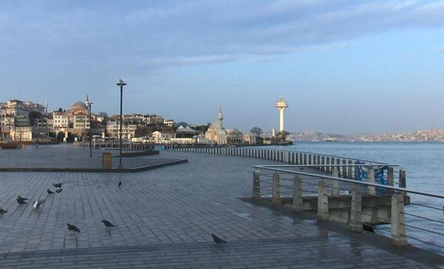 Sahilde balık tutmanın ve yürüyüş yapmanın yasaklanmasıyla birlikte önceden insan yoğunluğu yaşanan Üsküdar sahili ve meydanı bu sabah saatlerinde boş kaldı. Üsküdar- Eminönü seferini yapan motordaki yolcular da görevliler tarafından sosyal mesafeyi korumaları konusunda sık sık uyarıldı.