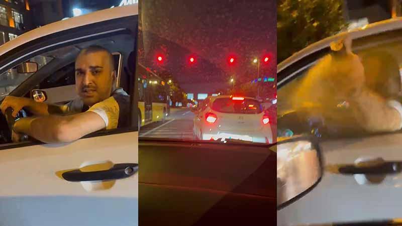 Üsküdar’da sürücünün trafikte yol verme kavgasında biber gazı sıktığı anlar kamerada