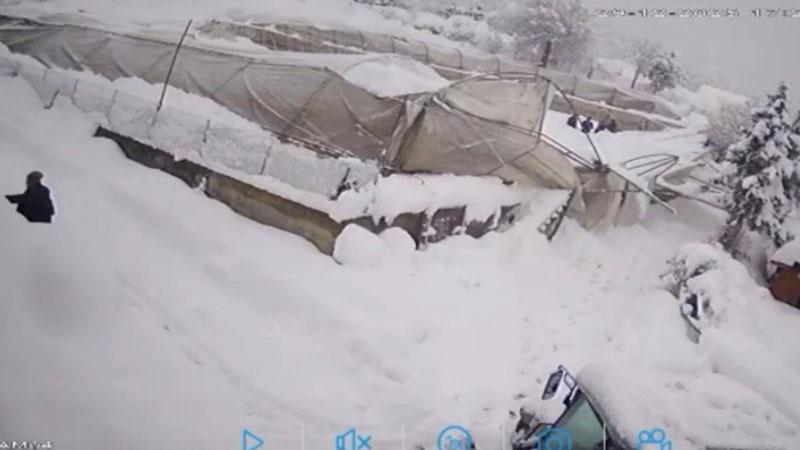 Üzerinde kar biriken seranın çökme anı kamerada