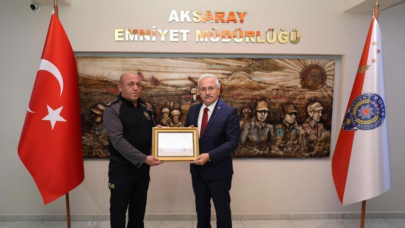 'Valiyi arayacağım' diyen alkollü sürücüye işlem yapan polislere, Aksaray Valisi'nden başarı belgesi