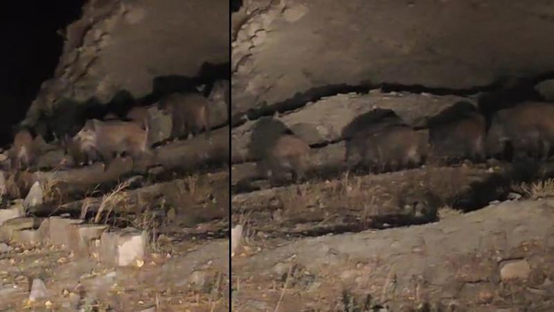 Van'ın Başkale ilçesine bağlı kırsal Esenyamaç Mahallesi'ne, yiyecek arayan domuz sürücü indi. Mahallede yaşayan Mustafa Özdemir tarafından cep telefonuyla görüntülenen domuz sürüsü, bir süre sonra gözden kayboldu.