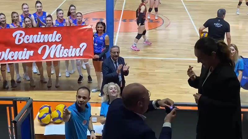 Kadınlar 2’nci Ligi 9’uncu Grup'ta Mehmet Ege İnşaat Orhaniye Voleybol ile Gemlik İstiklal Spor maçı öncesi sürpriz bir evlenme teklifi gerçekleşti.