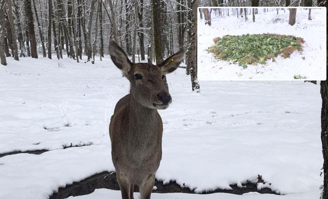 Yaban hayvanları için karla kaplı ormana yem bırakıldı
