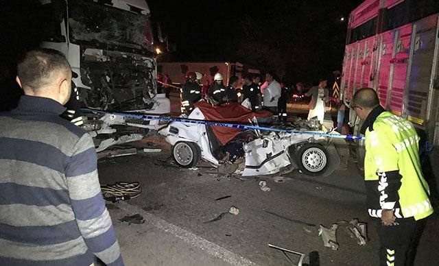 Yakıtı bitip, kamyonla çekilen otomobile TIR çarptı: 3 ölü, 2 yaralı
