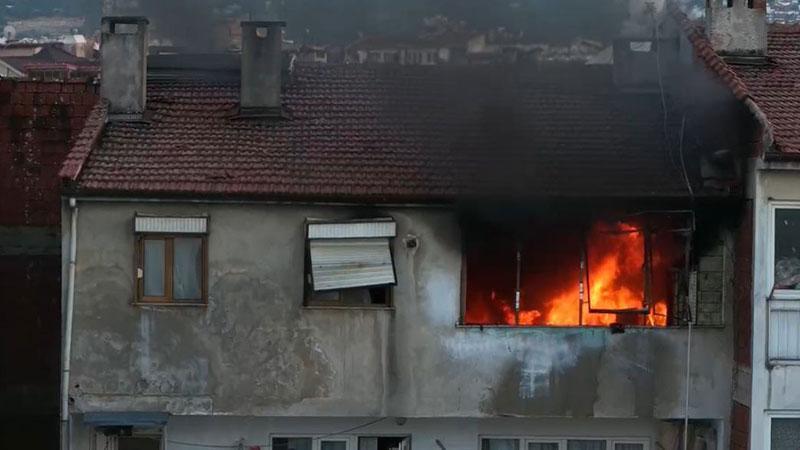Yangın sırasında dairede bulunan A.D. alt komşusu tarafından kurtarılırken, yangın itfaiye ekiplerinin kısa süreli müdahalesiyle görüntülendi.