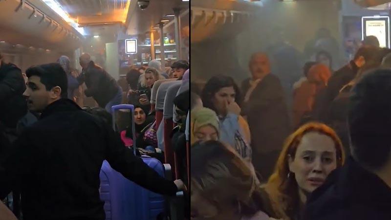Bir yolcunun ise “Hala içerideyiz ne bir gelen var ne de gelen. İnsanlar çığlık çığlığa yere düşüyorlar. Ortalık duman altı olmuş, kaptandan, ekipten gelen yok, giden yok. Uyarı yok, bir şey yok. İnsanlar burada yerlere düştü. Ortalık yanık kokuyor, hala bir şey yapan yok” diyerek tepki gösterdiği görüldü.