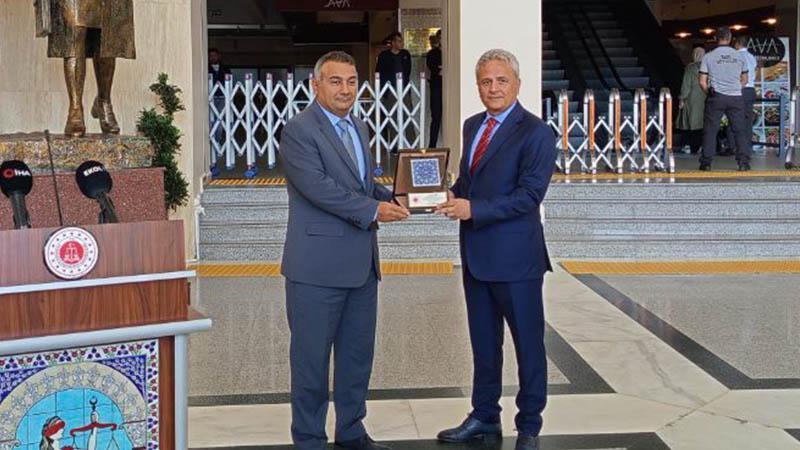 Veda konuşması sonrası Başsavcı Hüseyin Gümüş ve Başsavcı Vekili Bülent Dinçel'e plaket takdim edildi.