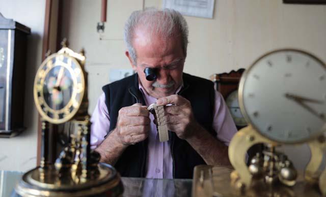 Yarım asırdır 15 metrekare dükkanında saat tamiri yapıyor