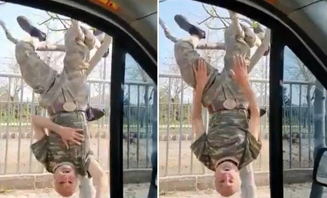 Sarıçam ilçesindeki Yeşil Bulvar'da otomobiliyle ilerleyen bir vatandaş, kaldırımdaki bir ağaçta askeri kamuflajlı yaşlı bir kişinin bacaklarıyla ağaca ters asıldığını görünce otomobilini yavaşlattı. Yaşlı adamın komando marşı söylediğini fark eden vatandaş, cep telefonuyla görüntülemeye başladı. "Her şey vatan için", "Her Türk asker doğar", "Ne mutlu Türküm diyene" diye bağıran yaşlı adamla sohbet eden vatandaş, "Hacı, her şey güzel de koronavirüs diye bir şey var" diye tepki gösterdi. Yaşlı adama kaç yaşında olduğunu soran vatandaş "16" cevabını aldı. Sosyal medyada paylaşılan görüntüler, büyük ilgi gördü.