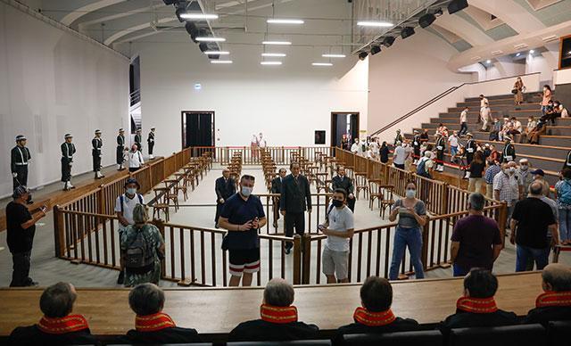 Müzedeki mahkeme salonunda Yüksek Adalet Divanı'nın arkasında yer alan "Adalet mülkün temelidir" yazısı dikkati çekiyor. Bu yazının altında Yüksek Adalet Divanı Başkanı Salim Başol, Başsavcı Altay Ömer Egesel ve diğer divan üyeleri ile mahkeme salonunda sanıkların yer aldığı bölümde karşılıklı olarak nöbet tutan askerlerin balmumu heykelleri bulunuyor. İdam cezası veren hakimlerin suratıysa balmumuyla yapılan heykellerde sansürlenmiş durumda.