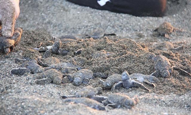 Yavru deniz kaplumbağalarının denize yolculuğu başladı