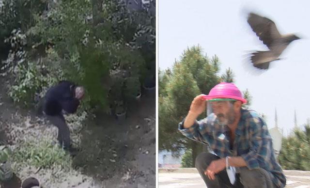 Maltepe'de yaşayan Abdullah Mecit Filizkıran evinin önündeki bahçeyle ilgilenmek için dışarıya çıktığında kargaların saldırısına uğradı. Başından yaralanan Filizkıran'ın karga saldırısına uğradığı anlar güvenlik kamerasına yansıdı.