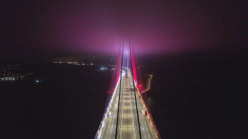 İstanbul’da akşam saatlerinde etkili olan sis, Yavuz Sultan Selim Köprüsü’nün bir kısmını kapladı. Köprünün ışıklandırması ile ortaya çıkan eşsiz manzara, dron ile havadan görüntülendi.