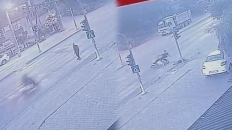Öte yandan olay anı, çevredeki iş yerinin güvenlik kamerasına yansıdı. Kazayla ilgili inceleme başlatıldı.