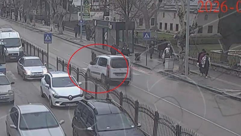 Yaya geçidinden geçerken hafif ticari araç çarptı; kaza kamerada