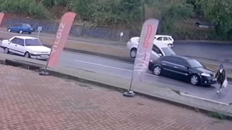 Bartın'da yayaya yol vermek için sürücüsünün durduğu otomobile, arkadan gelen otomobil çarptı. Kaza, güvenlik kamerasına yansıdı.