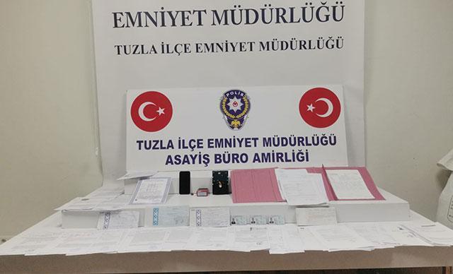 Tuzla Yayla Mahallesi'nde bulunan yediemin otoparkından , sahte vekaletname kullanılmak suretiyle hacizli yakalama kararı nedeniyle bağlı olan S.T. (58) isimli kişiye ait iki TIR ve dorse çalındı. Polis ekipleri, geçen cuma günü gerçekleşen olaya ilişkin şikayet üzerine harekete geçti. Ekipler, araçları teslim alan şüphelilerin kimlik bilgilerini tespit etti. Kimliği tespit edilen B.T., (26) önceki gün Kartal Karlıktepe Mahallesi’nde bulunan adresinde yakalanarak gözaltına alındı. Şüphelinin ev ve aracında yapılan aramalarda 3 adet farklı isimlere ait sahte kimlik belgesi, 14 adet vekâletname, 3 adet dolu senet, senet karnesi, çok sayıda farklı araçlara ait trafikten men muhafaza altına alma evrakı, çok sayıda farklı icra dairelerine ait tensip tutanağı, çok sayıda muvaffakkatname evrakı, çok sayıda banka dekontu ve rehin sözleşmesi, cep telefonu, USB bellek, harici hafıza belleği, çok sayıda farklı içeriklerde evrak ele geçirildi. Şüphelinin aracında yapılan aramalar kameraya yansırken, ele geçirilen sahte evrakla Tuzla İlçe Emniyet Müdürlüğü’nde sergilendi. "Resmi Belgede Sahtecilik" ve "Oto Hırsızlığı" suçlarından dün adliyeye sevk edilen B.T. tutuklanarak cezaevine gönderildi.