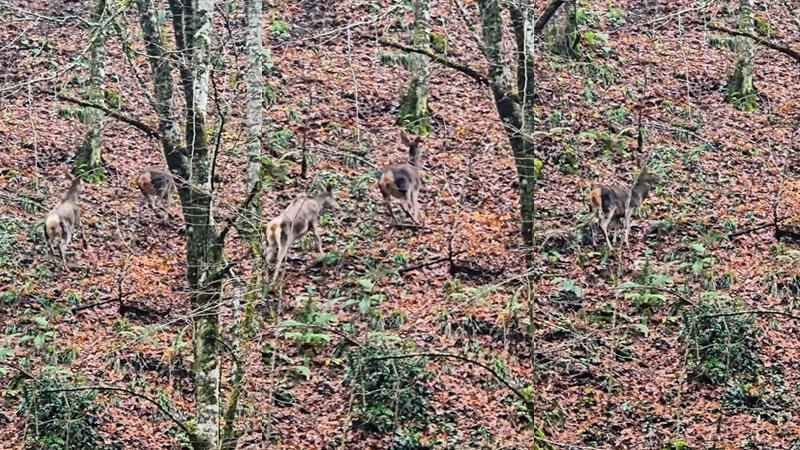 Yedigöller'de ormanda gezinen geyikler kamerada