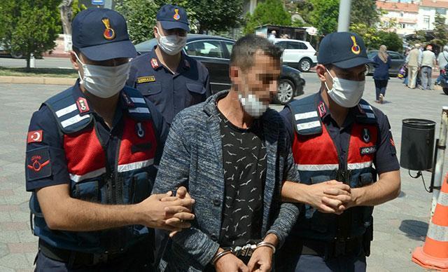 İlçe Jandarma Komutanlığı'nda soruşturması tamamlanan T.K., adliyeye sevk edildi.