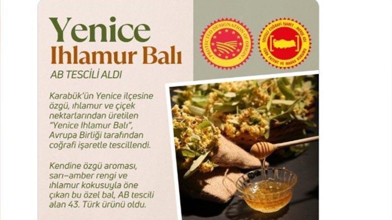 Karabük'ün Yenice ilçesine ait ıhlamur balı, Avrupa Birliği'nden (AB) coğrafi işaret tescili alarak, Türkiye'nin AB coğrafi işaret tescilli 43'üncü ürünü oldu.