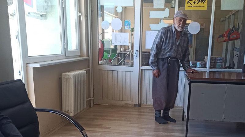 Bolu’nun Mudurnu ilçesinde tarladaki işini bitirip ilaç almak için Pancar Kooperatifi’ne giden Rafet Burukoğlu (78), yerlerin kirlenmemesi için ayakkabılarını binanın dışında çıkardı.