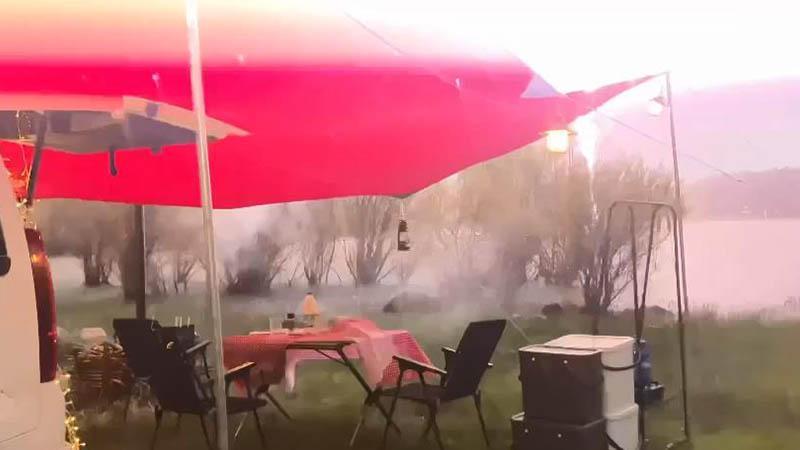 Merve (28) ve Tuncay (29) Güler çifti, oğulları Talha Güler (7) ile 10 Haziran'da, Kurumcu Göleti kenarında kamp yaparken sağanak başladı. Sosyal medyada paylaşmak için kamp yerini kamerayla kaydeden aile, ani yağış nedeniyle toparlanmaya başladı. Bu sırada ailenin yaklaşık 500 metre uzağındaki gölün kıyısına yıldırım düştü. Yıldırımın düşme anı, kayıttaki kameraya yansıdı. Bir süre panik yaşayan Güler ailesi, yağmurun dinmesinin ardından kamplarına devam etti.