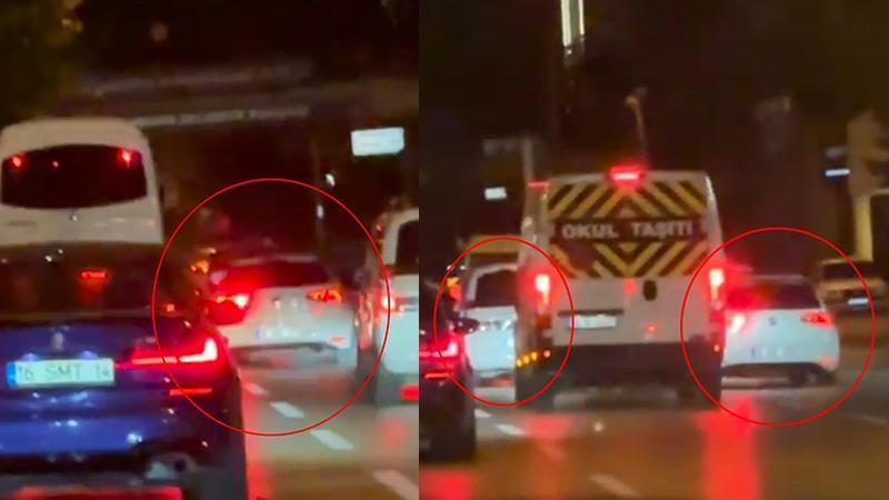 Bursa'da yoğun trafiğe aldırmayan 2 sürücü, araçları ile makas atarak ilerledi. O anlar, cep telefonu kamerasıyla görüntülendi.